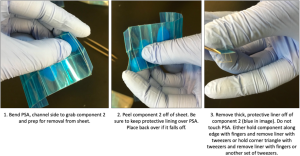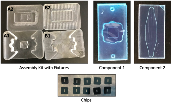 Video of Assembly Part 1; Video of Assembly Part 2 (videos show assembly of trench-down device, note chip is placed trench-up on fixture A1)