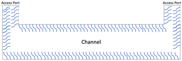Coating molecules adhere to the full surface area of the channel