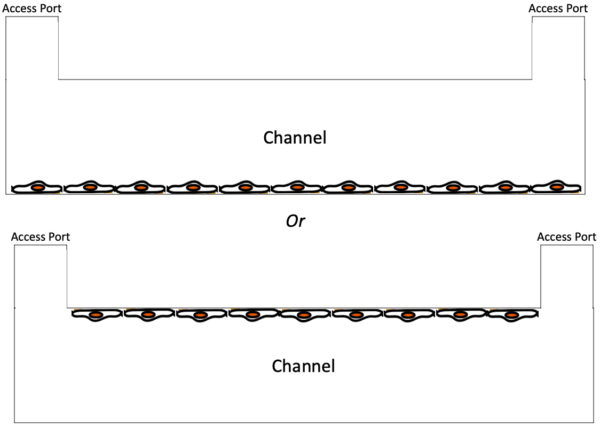 Cells settle on the bottom of the channel (top side if the device is flipped), and do not attach to any other surface area