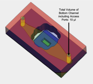 Total volume of bottom channel including access ports: 10 µl