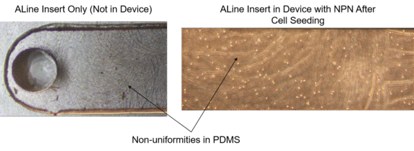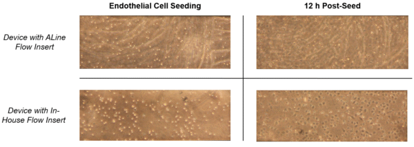 To test biocompatibility, we seeded HUVECs in NPN devices with either the ALine or in-house insert.