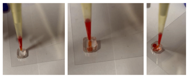 Figure 4. Leakage test performed at ALine, demonstrating a tight seal between the PSA and glass slide.