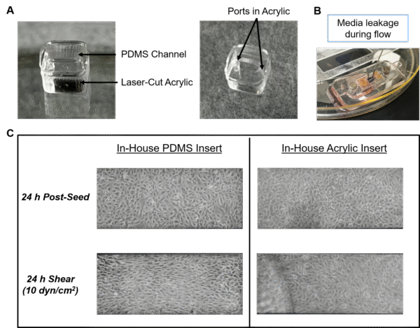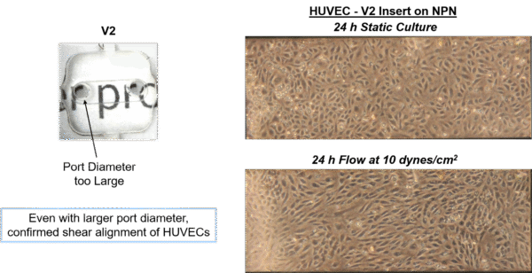 Figure 10. Endothelial shear conditioning in V2 manufactured flow insert.