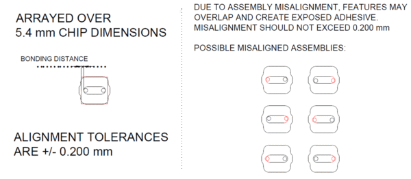 After discussing this issue with ALine, we determined that maintaining our original channel length (4.4 mm) without leaving tolerance between the channel and ports was worth the risk of potential channel/port overlap. We reasoned that a small area of exposed PSA would not harm the cells because there are currently areas of exposed PSA in the open well configuration. After performing COMSOL simulations to evaluate the flow profile in 200 μm offset channels, we decided to proceed with production.