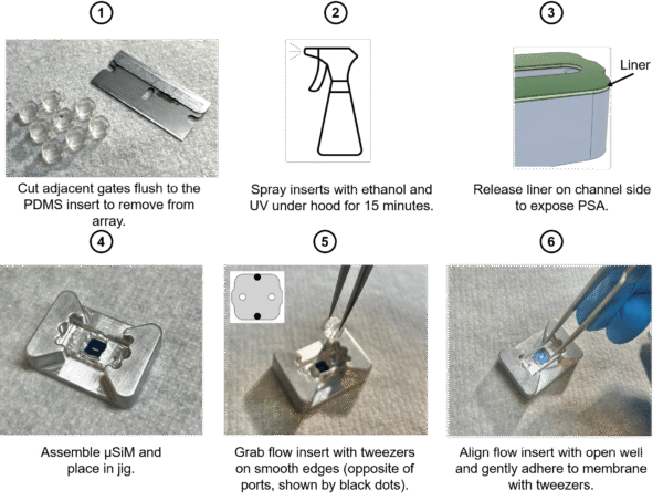 The peel-and-stick capability has proven extremely useful in the quick adoption of the fluidic configuration by others within and outside the lab. Collaborators have begun to use the manufactured inserts in applications such as T-cell migration and iPSC-EC culture. Looking forward to future developments, it will now be possible to connect multiple fluidic μSiM devices to increase throughput and study crosstalk between different organ chip systems, such as between the brain and lung.