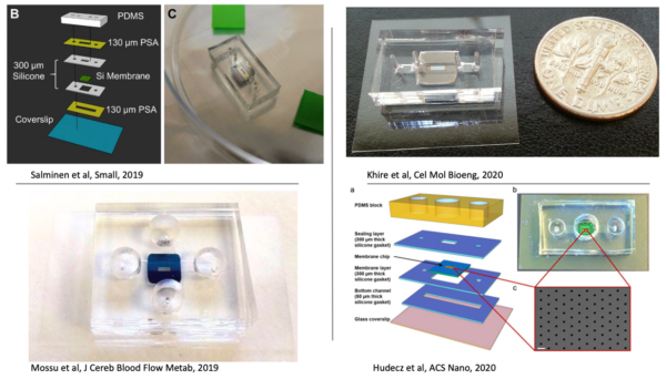 The µSiM platform has been used by several laboratories across the world, primarily to study a variety of vascular barriers. The devices feature an ultra-thin, highly porous silicon membrane, ideal for co-culture studies and in situ analyses requiring excellent optical properties. There have been several versions of the µSiM, as discussed below. The latest, modular version is designed for rapid assembly, ease of use by any laboratory, and the ability to easily adapt the device based on the specific needs of the user.