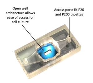 First generation devices are made primarily of PDMS and are assembled layer-by layer using traditional bonding methods of UV ozone exposure and thermal incubation. The devices generally have a “Transwell”-style layout, with an open well architecture and a bottom channel separated by a porous membrane. However, µSiM devices have also been assembled in a microfluidic style with a top and bottom channel that can be connected to tubing for addition of fluid flow. Thus, the main benefit of the first generation µSiM is its diversity and adaptability to meet the needs of a particular laboratory. This generation of devices has been used to study osteomyelitis, vascular transmigration, and to develop models of the cerebrovascular and blood-brain barrier.